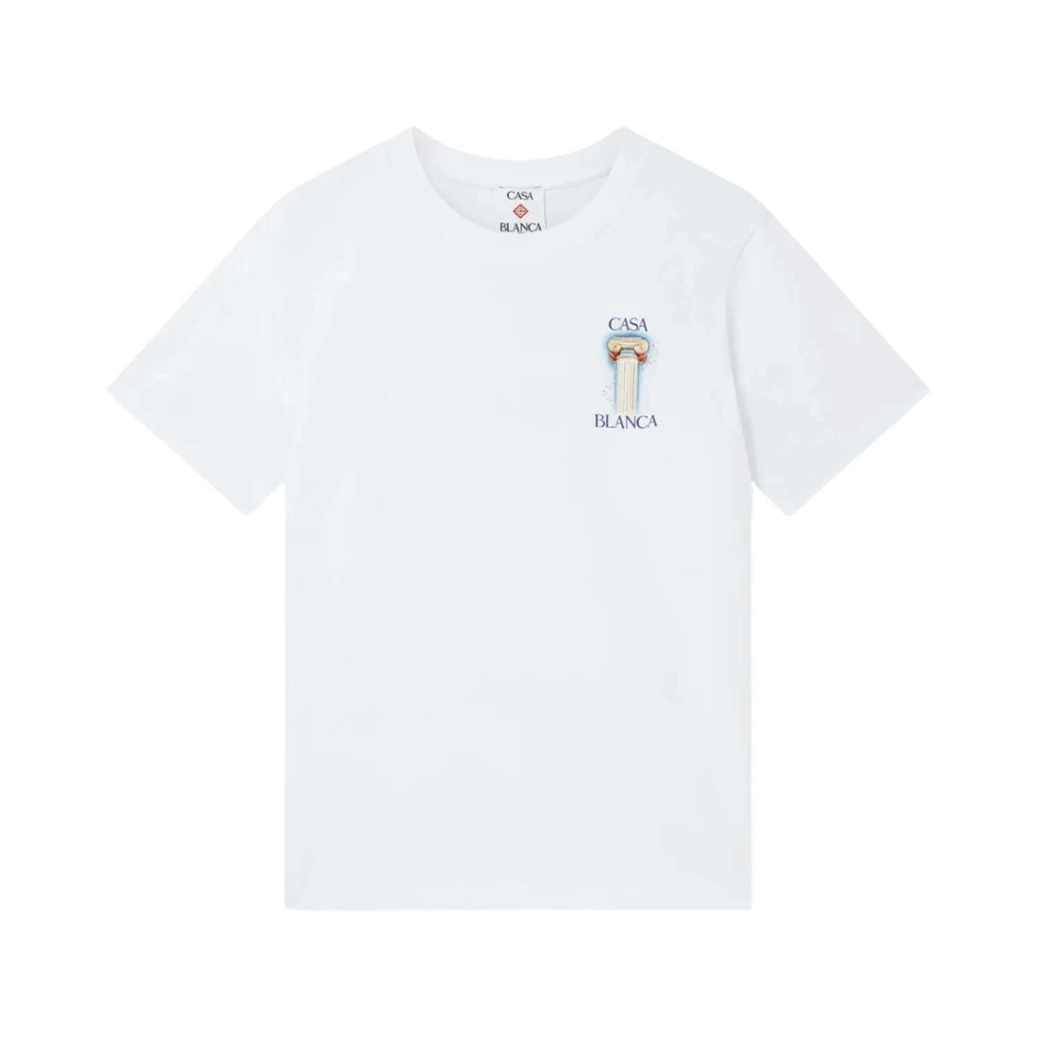 Alliant élégance artistique et esprit sport-chic, le t-shirt Casablanca La Colonne en blanc est une pièce emblématique de la maison parisienne. Confectionné en coton biologique doux et respirant, il présente une coupe classique avec un col rond et des manches courtes. Sur la poitrine, une illustration raffinée représentant une colonne architecturale vient sublimer le design, signature du style inspiré du voyage et de l’art de vivre méditerranéen propre à Casablanca. Ce t-shirt incarne à la perfection le mélange entre luxe décontracté et esthétique rétro.