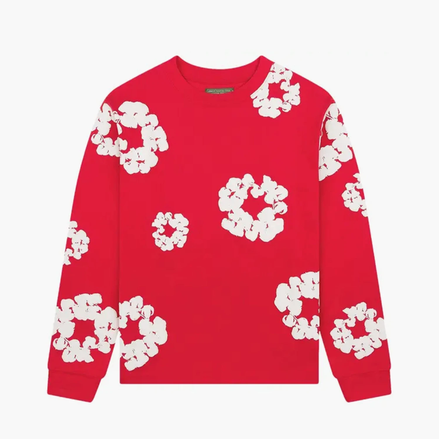 Denim Tears T-Shirt Manches Longues The Cotton Wreath Rouge