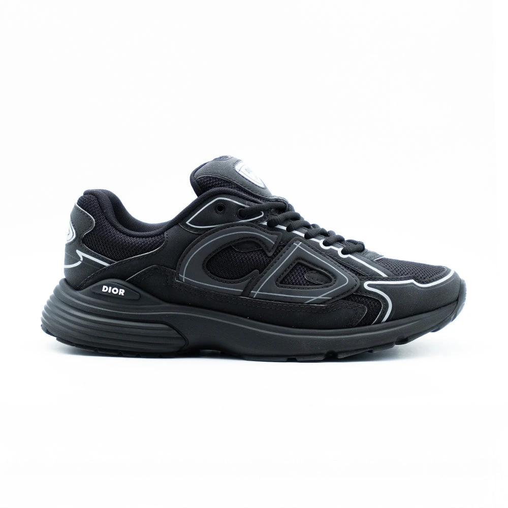Les Dior B30 – Black sont des sneakers de luxe au design moderne et sportif. Fabriquées avec un mélange de mesh technique et de cuir, elles offrent à la fois respirabilité et élégance. Le logo « CD » oversized sur le côté apporte une touche distinctive et emblématique de la maison Dior. Leur semelle épaisse et ergonomique garantit un confort optimal pour un usage quotidien. Avec leur coloris noir sobre et raffiné, elles s’intègrent facilement dans un look urbain et sophistiqué.