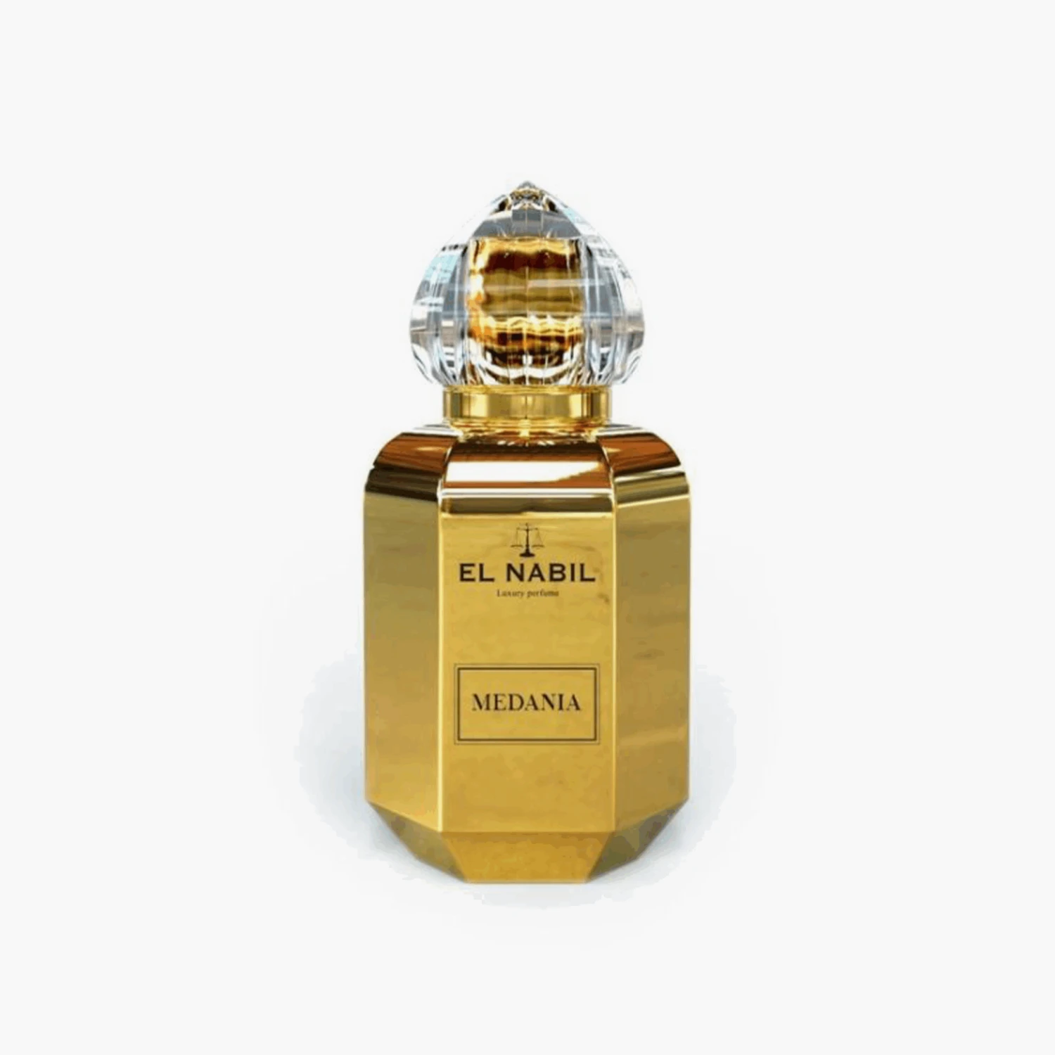 Le parfum Medania d’El Nabil est une fragrance orientale de caractère, élégamment présentée dans un flacon doré luxueux. Il dévoile des notes chaudes et envoûtantes, mêlant bois précieux, ambre et musc. Sa tenue longue durée et sa signature olfactive intense en font un parfum d’exception. Idéal pour celles et ceux en quête d’un sillage raffiné et affirmé. Une création unique pour sublimer chaque instant avec élégance et puissance.