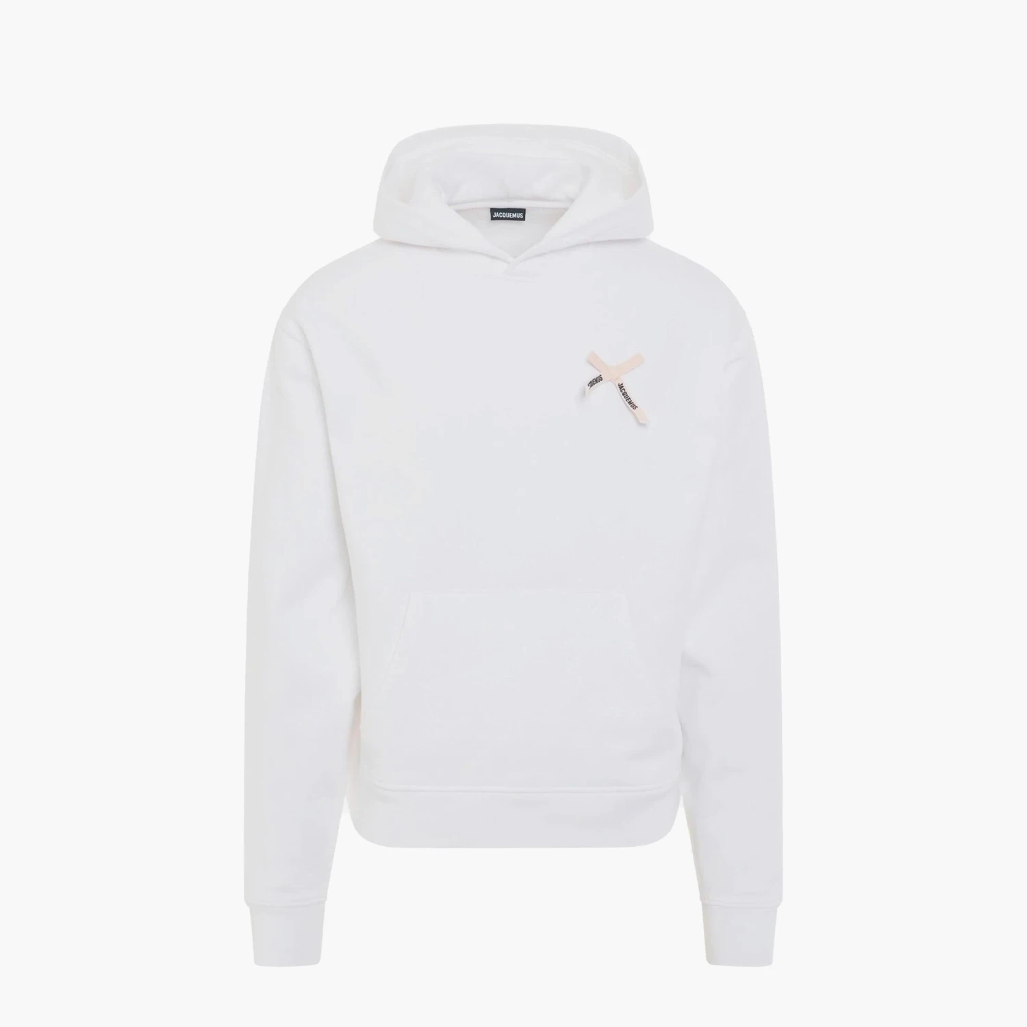 Le Jacquemus Sweatshirt – Le Hoodie Noeud – White est une pièce élégante et originale qui allie confort et style. Fabriqué en coton blanc de haute qualité, il présente une coupe classique avec une capuche ajustable et une poche kangourou pratique. L’élément distinctif est le nœud décoratif en tissu, subtilement placé sur la poitrine, qui apporte une touche unique et sophistiquée. Les finitions soignées et la sobriété du design en font un choix parfait pour un look minimaliste mais chic. Idéal pour un style casual rehaussé d’un détail signature de la maison Jacquemus.