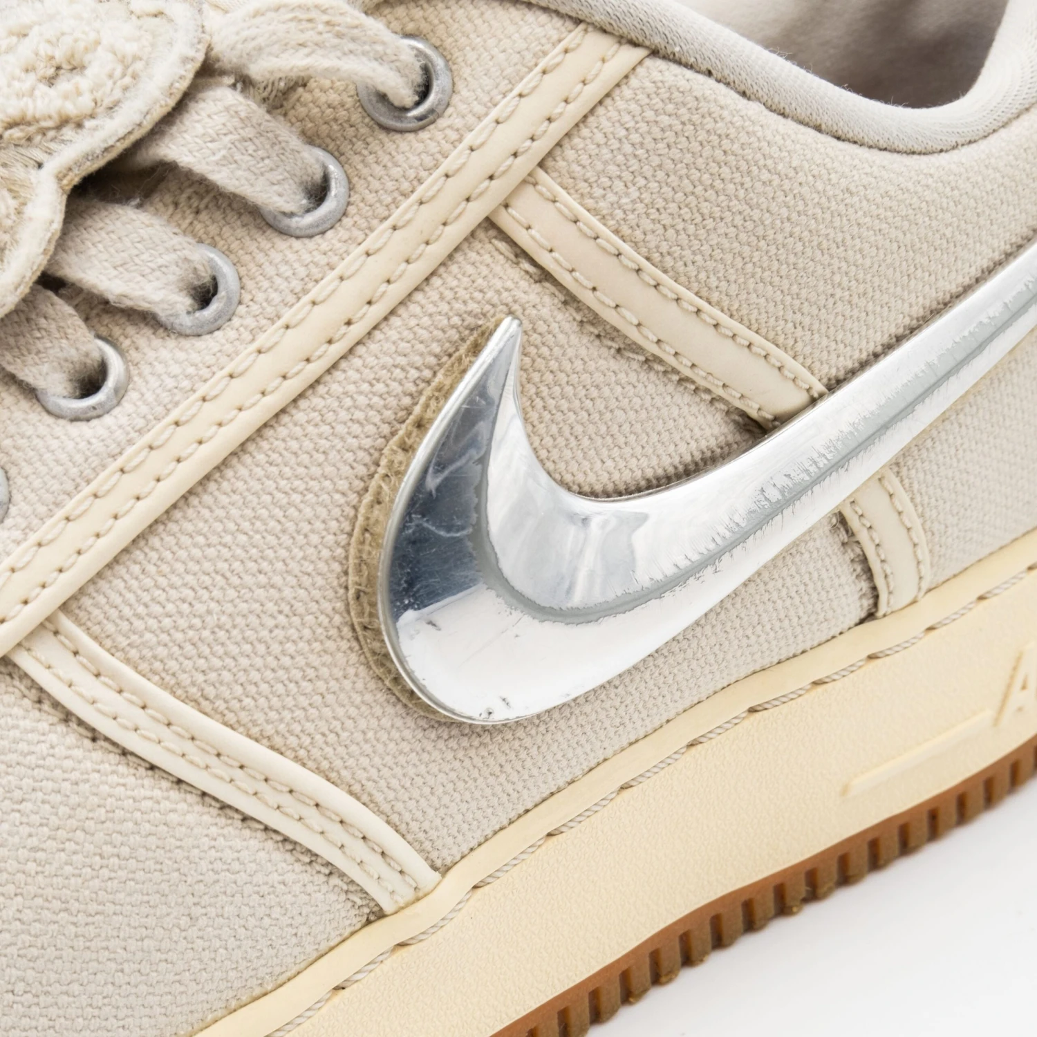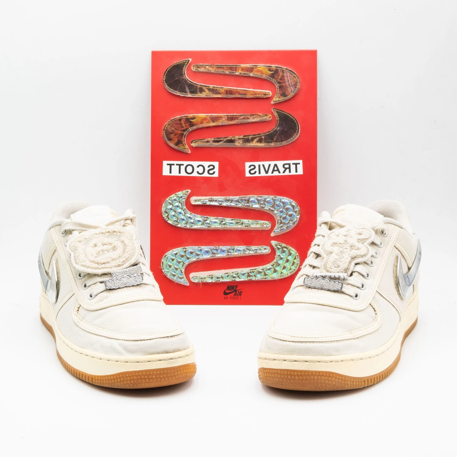La Nike Air Force 1 Low Travis Scott Sail est une collaboration emblématique entre le rappeur Travis Scott et Nike. Cette sneaker se distingue par sa tige en toile sail (blanc cassé) minimaliste, offrant un look épuré et texturé. Son Swoosh latéral métallique amovible apporte une touche personnalisable et futuriste. Des détails uniques tels que les patchs détachables en velours éponge sur les lacets et le lace lock argenté renforcent l’identité exclusive du modèle. La semelle intermédiaire crème et la semelle extérieure gum assurent un contraste harmonieux et rétro. Un design qui fusionne parfaitement le style streetwear et l’élégance contemporaine.