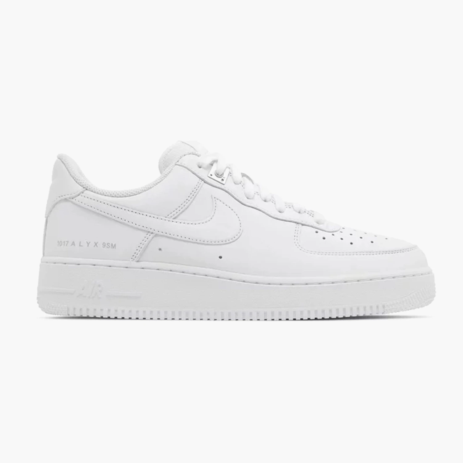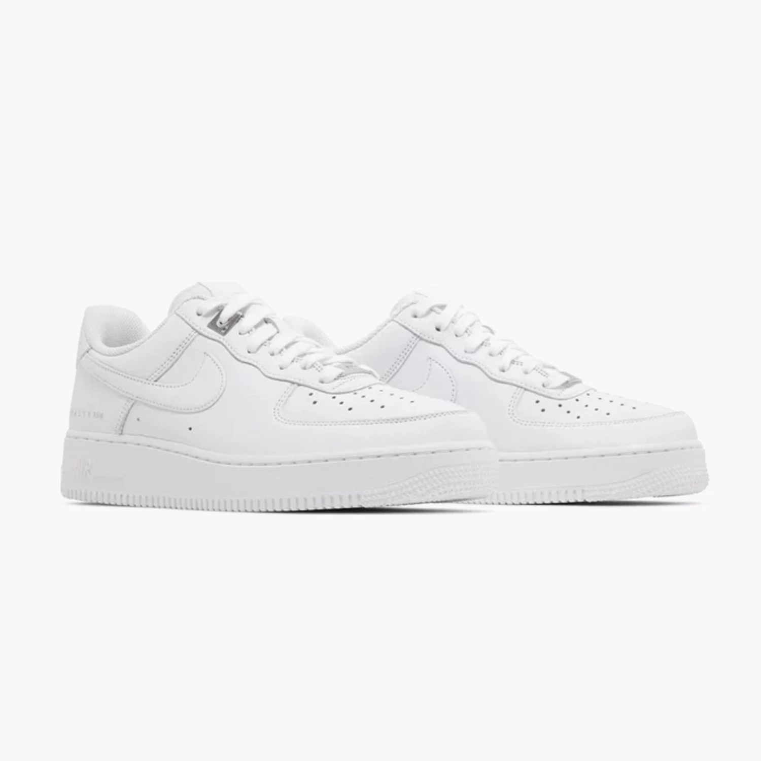 La 1017 ALYX 9SM x Nike Air Force 1 Low SP ‘Triple White’ présente la version minimaliste de Matthew M. Williams de la sneaker emblématique. Fabriquée en cuir blanc tambouriné, la tige est ornée de la marque Swoosh ton sur ton et d’un embout métallique sur l’un des œillets latéraux. Les bijoux de lacet ALYX et la mention « 1017 ALYX 9SM » estampillée en lettres argentées sur le talon latéral sont des éléments uniques. La sneaker est montée sur une semelle intermédiaire blanche assortie avec une semelle Air encapsulée dans le talon.
