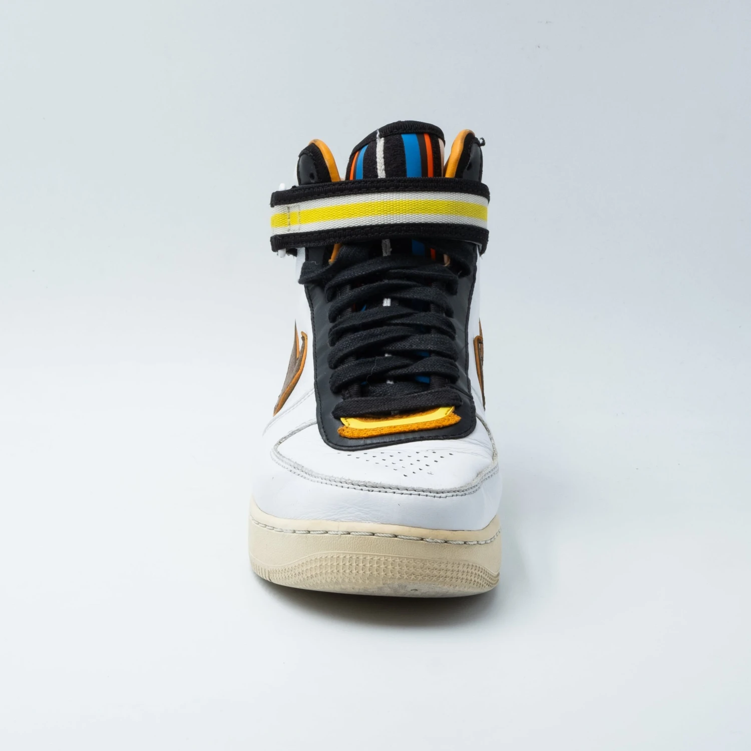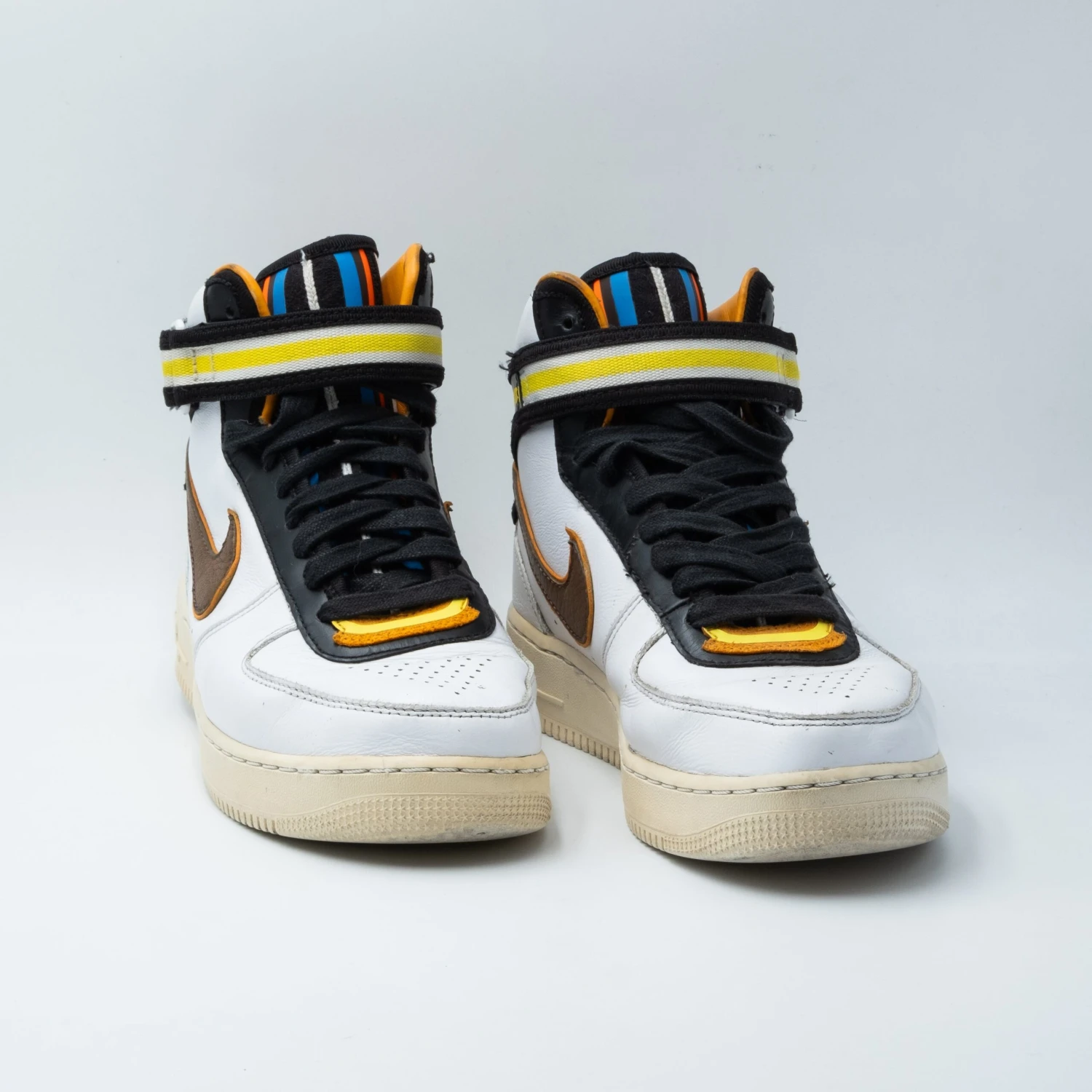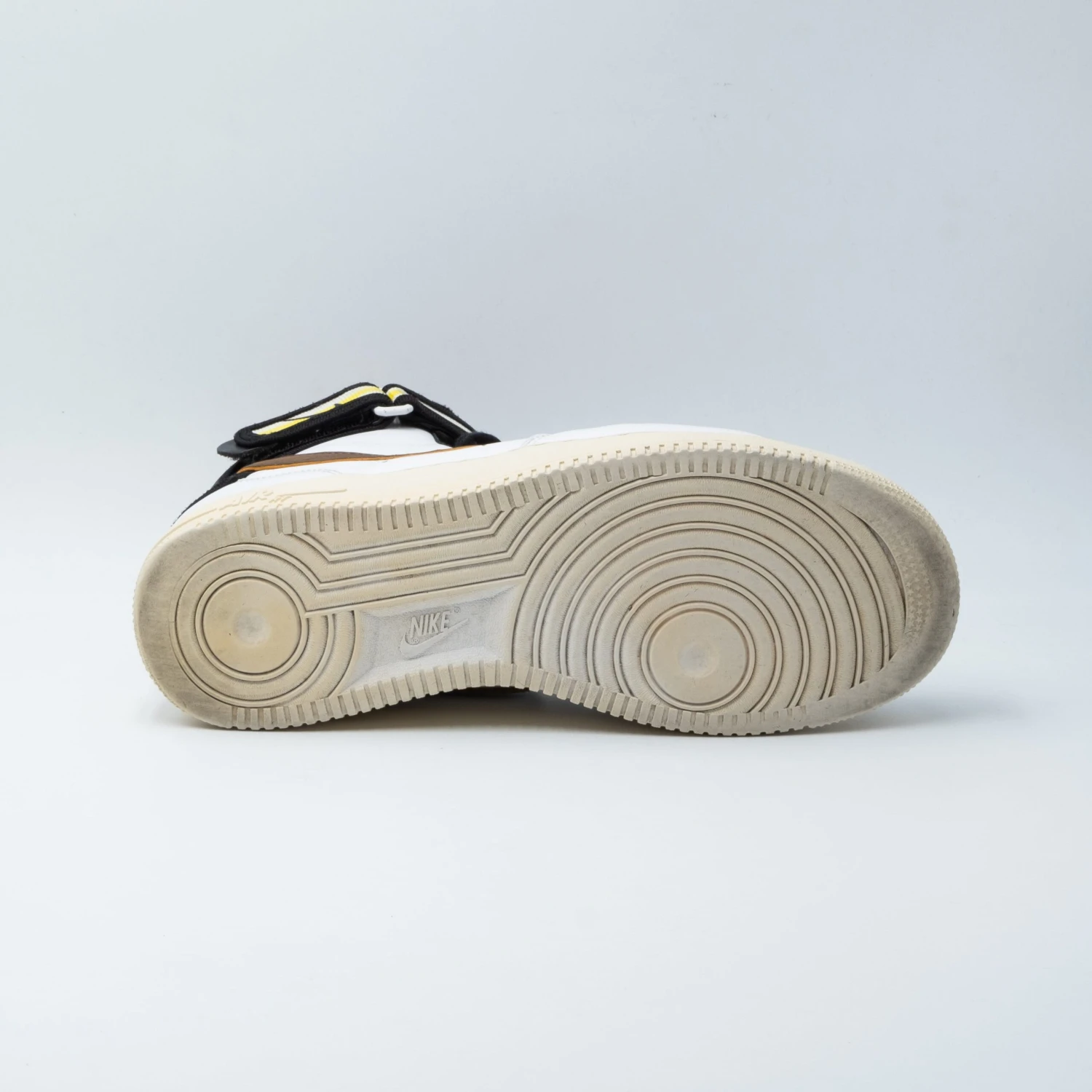 Riccardo Tisci s’est associé à Nike pour sortir une collection 2014 de coloris de la Air Force 1. La Air Force 1 Mid Tisci White est dotée d’une tige en cuir Vachetta Tan de première qualité avec des perforations sur la zone des orteils pour une meilleure respirabilité. La sneaker présente également des accents en cuir noir sur le contour des yeux, le Swoosh et la languette, ainsi qu’une sangle de cheville allant du blanc au gris foncé et une unité Air encapsulée dans une semelle intermédiaire en Phylon.