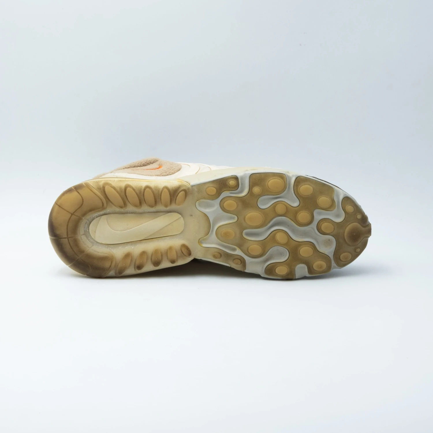 The Travis Scott x Air Max 270 React ENG ‘Cactus Trails’ présente la vision de design unique du rappeur de Houston sur une silhouette non rétro de Nike. La chaussure de course lifestyle est traitée avec des tons rustiques, mettant en avant une tige en textile crème avec des empiècements ton sur ton en TPU et un bout en nubuck marron. Le col, la languette et les œillets sont rehaussés de touches subtiles de couleur, tandis que la semelle intermédiaire arbore une finition jaune qui s’étend jusqu’à la bulle d’air. Le branding Cactus Jack au talon vient parfaire le look.