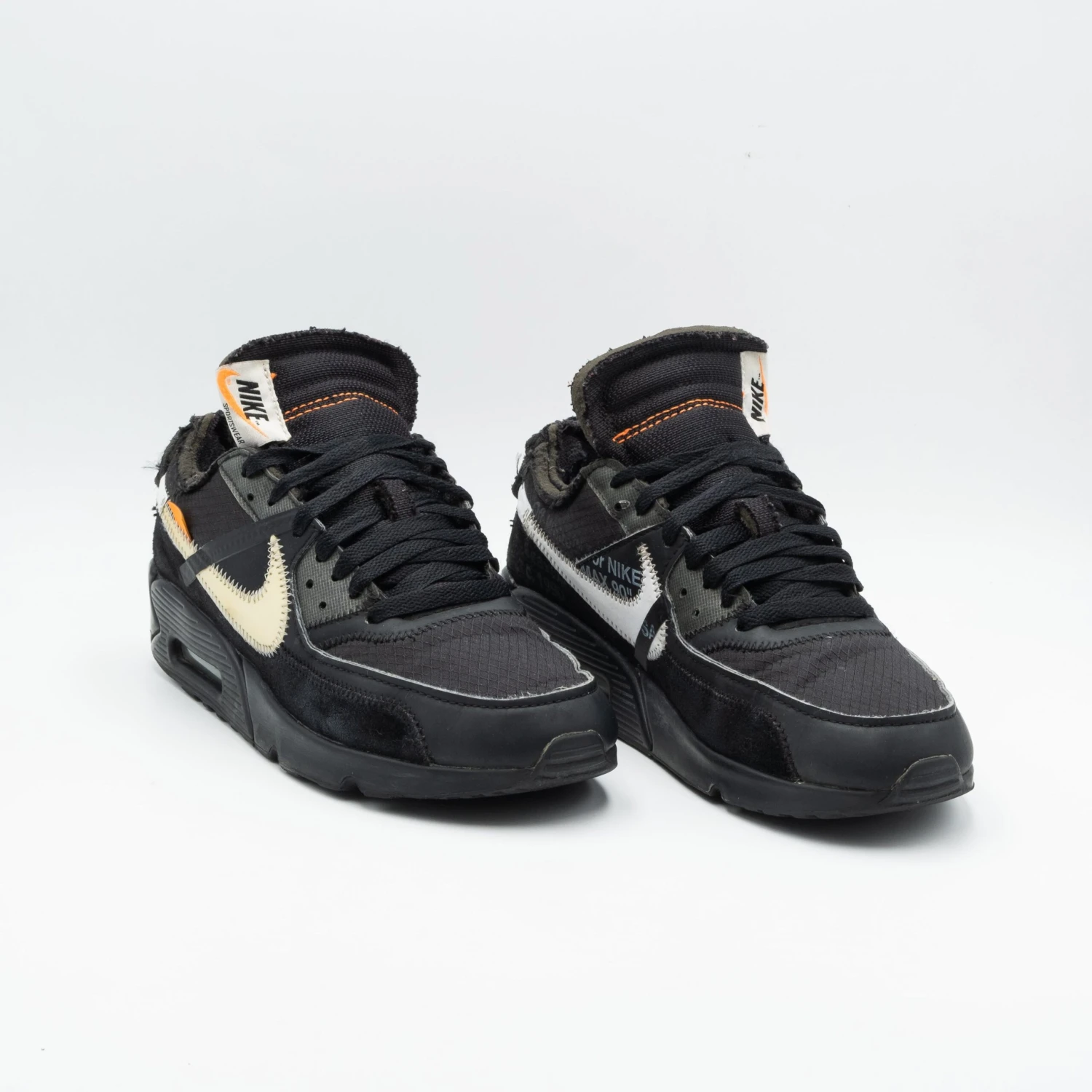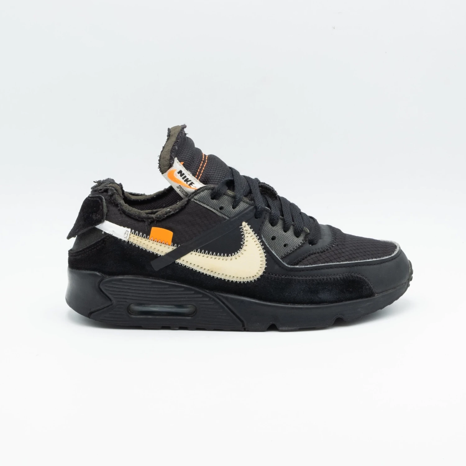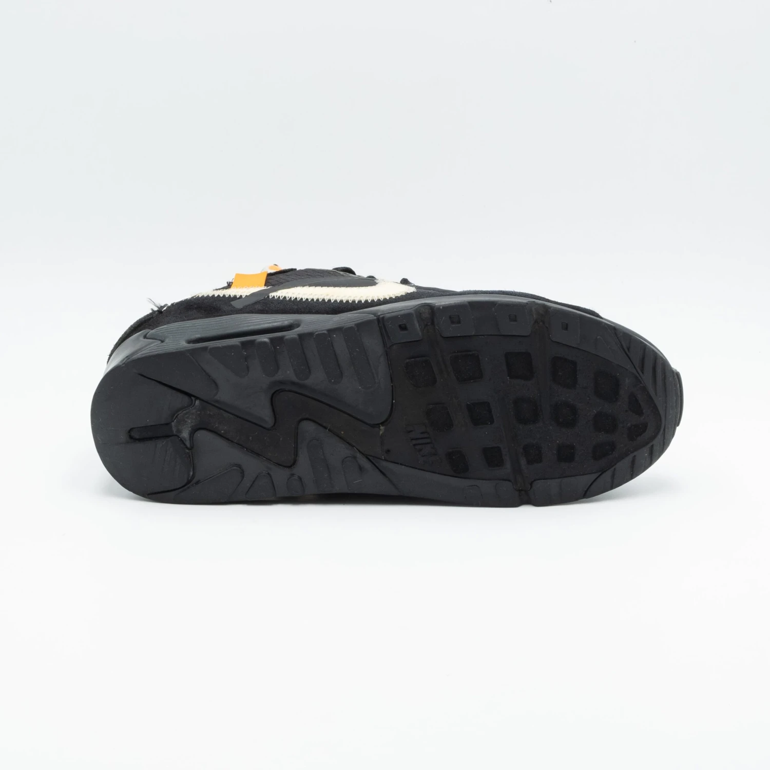 La Off-White x Nike Air Max 90 ‘Black’ offre un mélange unique de matériaux sur l’empeigne, qui combine une base ripstop avec des superpositions en nubuck et un garde-boue en daim. La finition entièrement noire est contrastée par un Swoosh blanc avec des surpiqûres en zigzag, une petite languette orange sur le panneau arrière et des surpiqûres orange sur la languette en mousse apparente. Le bloc de texte signé Virgil Abloh apparaît sur le côté médian de la chaussure.