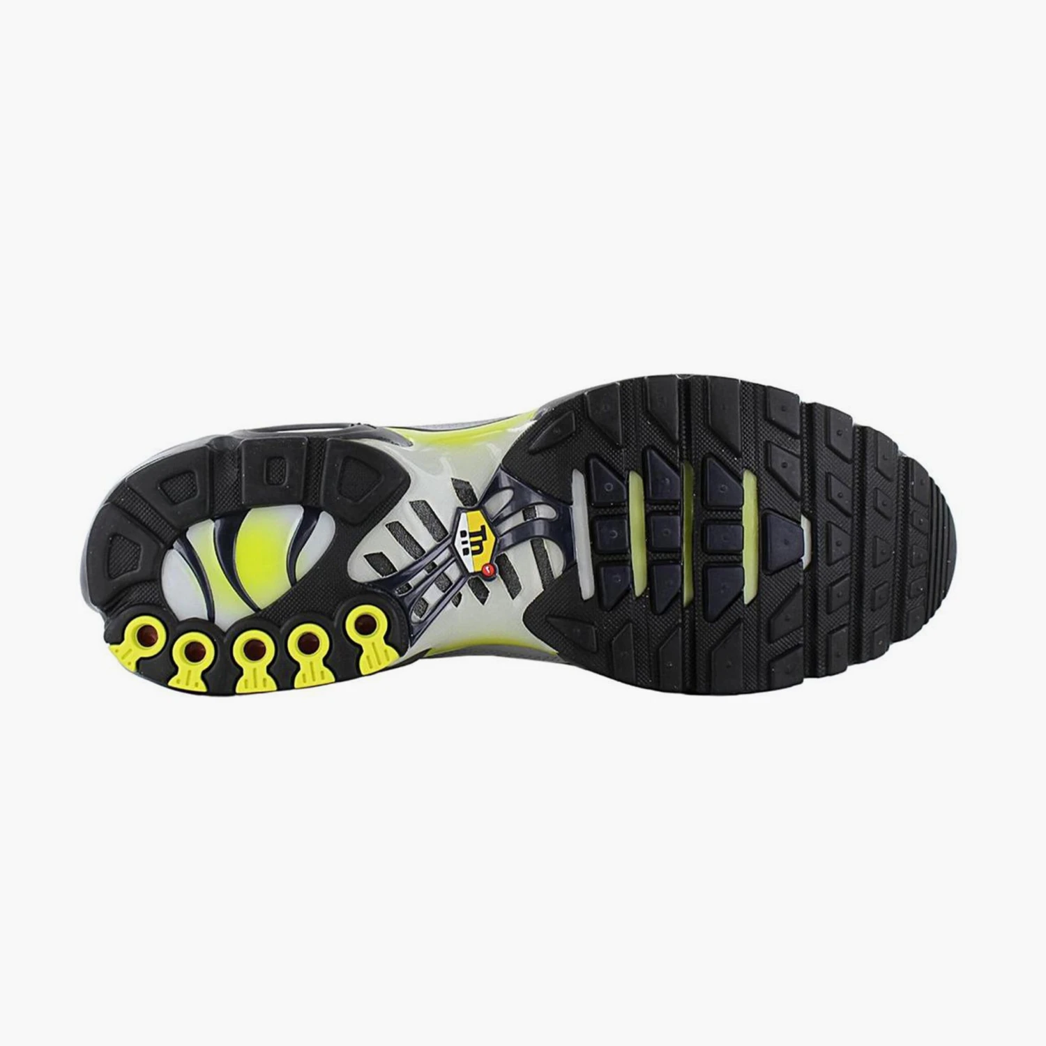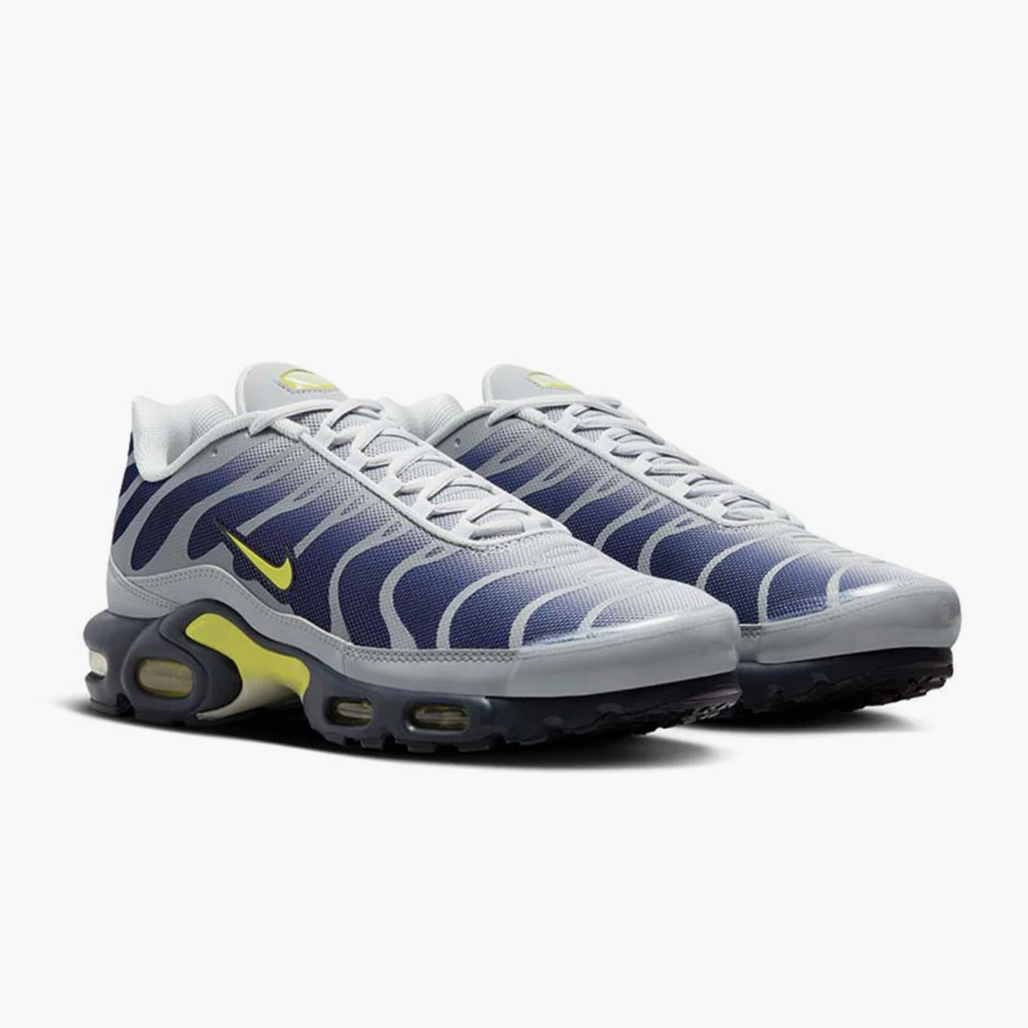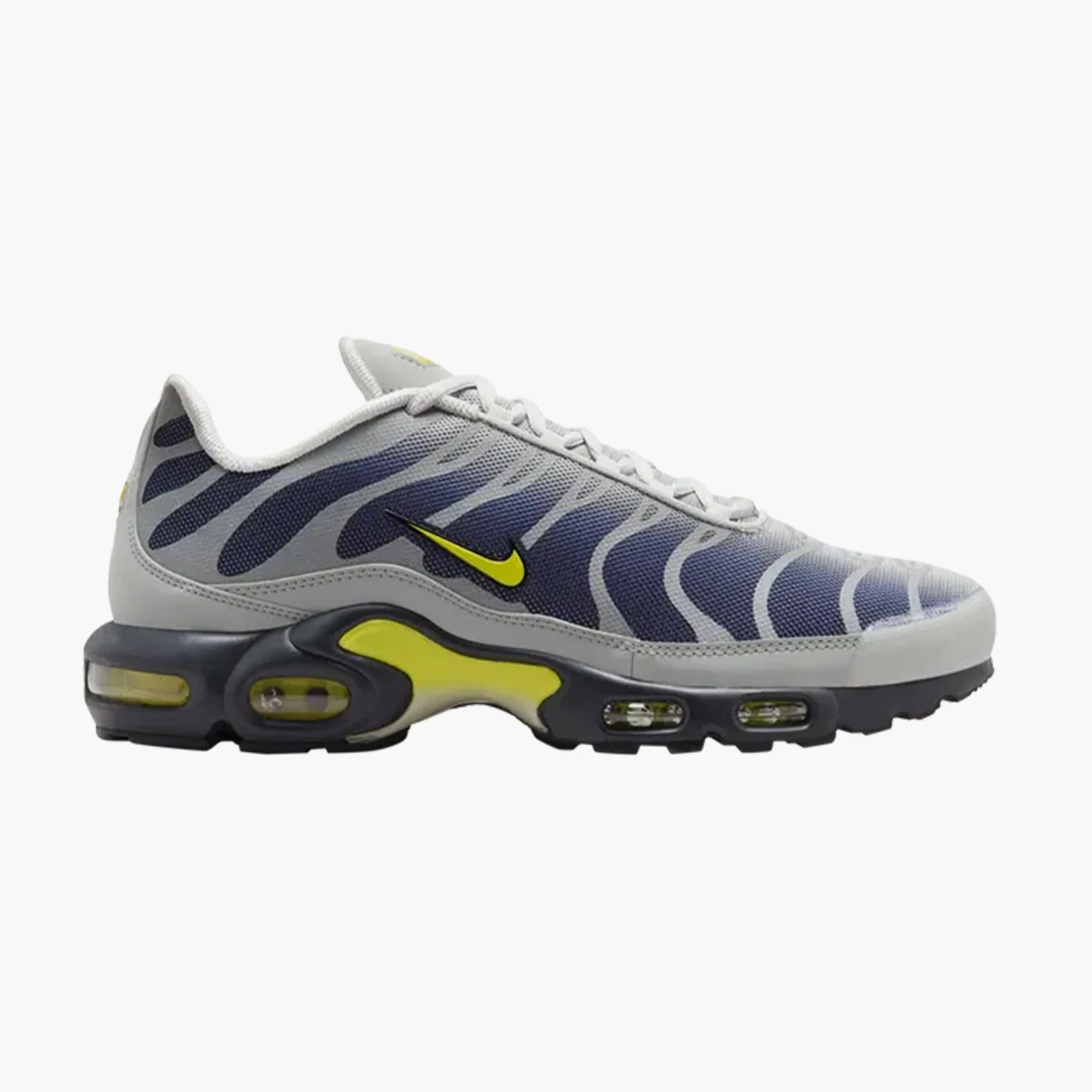 La Nike Air Max Plus Obsidian Opti Yellow combine une tige en mesh bleu nuit avec des nervures blanches ondulées pour un look fluide et dynamique. Son mini Swoosh jaune fluo apporte une touche de contraste audacieuse, assortie aux accents de la semelle. La technologie Tuned Air assure un amorti ciblé et réactif sur toute la longueur du pied. Sa semelle extérieure noire garantit adhérence et durabilité. Un modèle à l’allure technique et énergique, idéal pour se démarquer dans un style urbain.