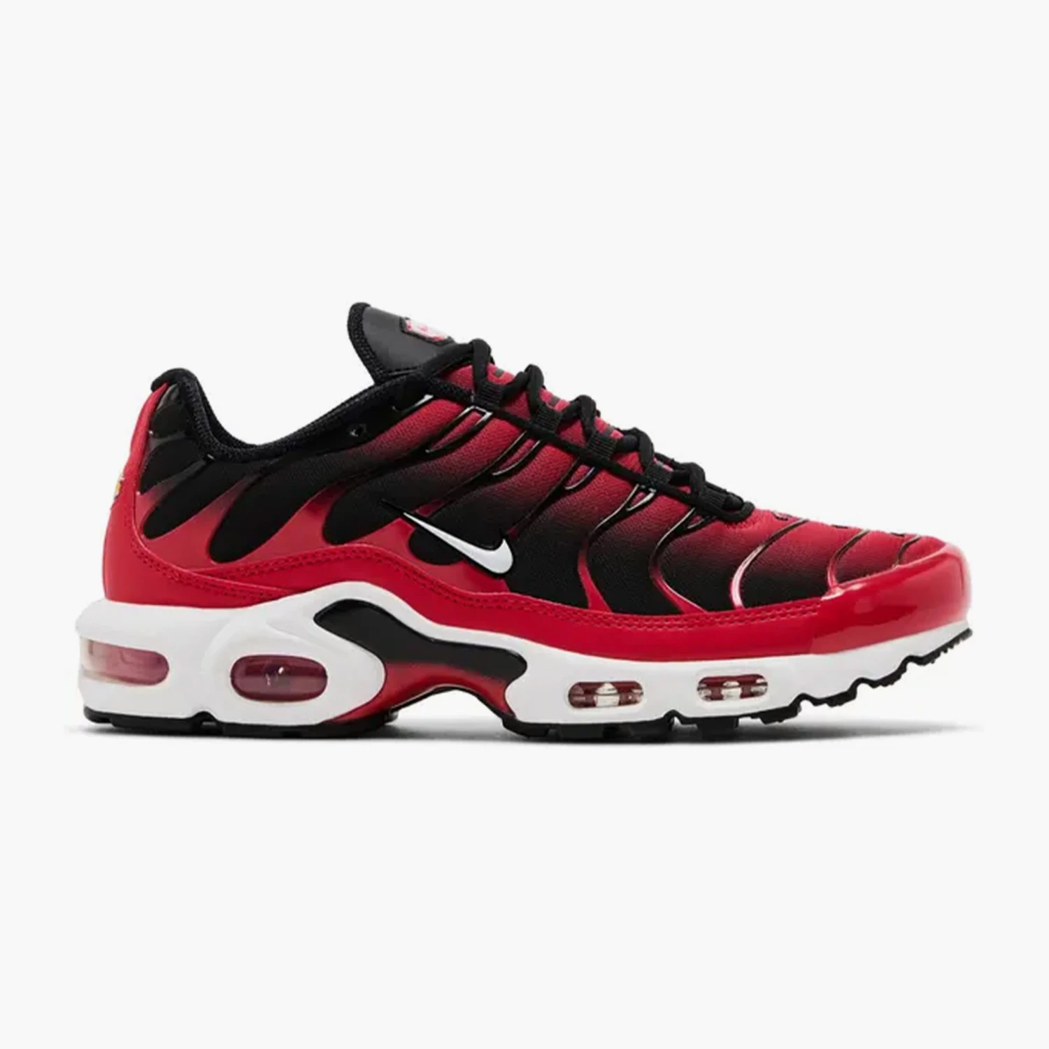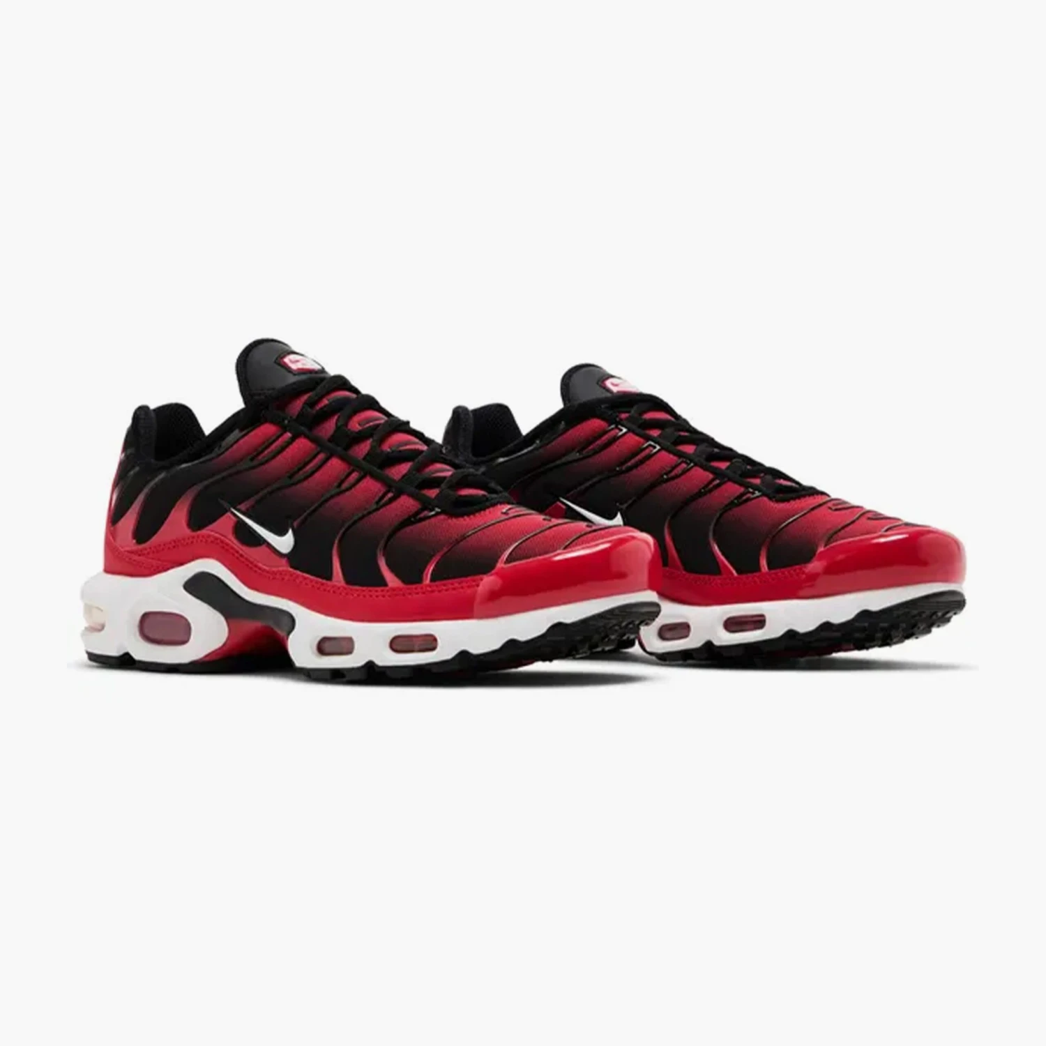 La Nike Air Max Plus University Red White Black est une sneaker percutante avec un dégradé rouge vif et noir, accentué par une base blanche éclatante. La tige en mesh technique est structurée par des nervures en TPU noires, pour un maintien optimal et un look agressif. Le mini Swoosh blanc apporte un contraste net et dynamique. La semelle équipée de la technologie Tuned Air assure un amorti ciblé et réactif. Un modèle au style flamboyant et urbain, parfait pour se démarquer.