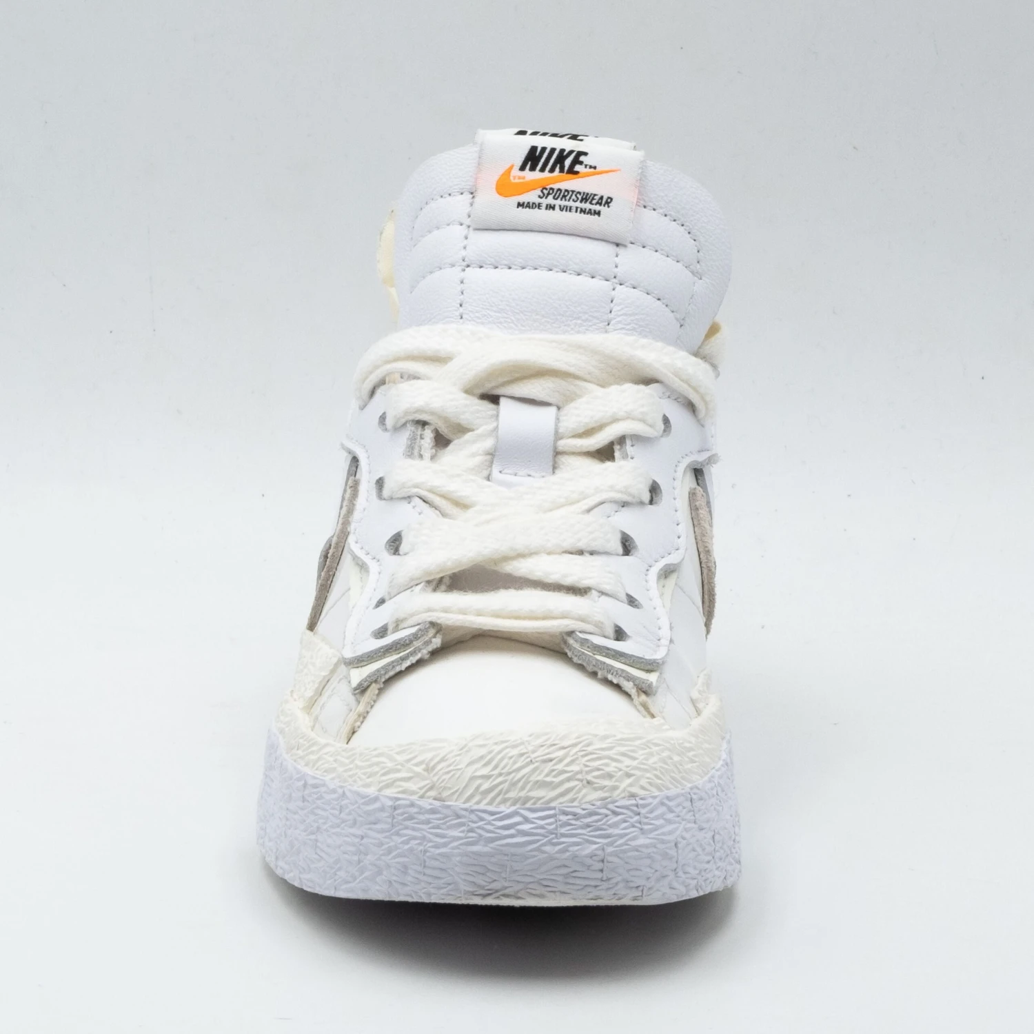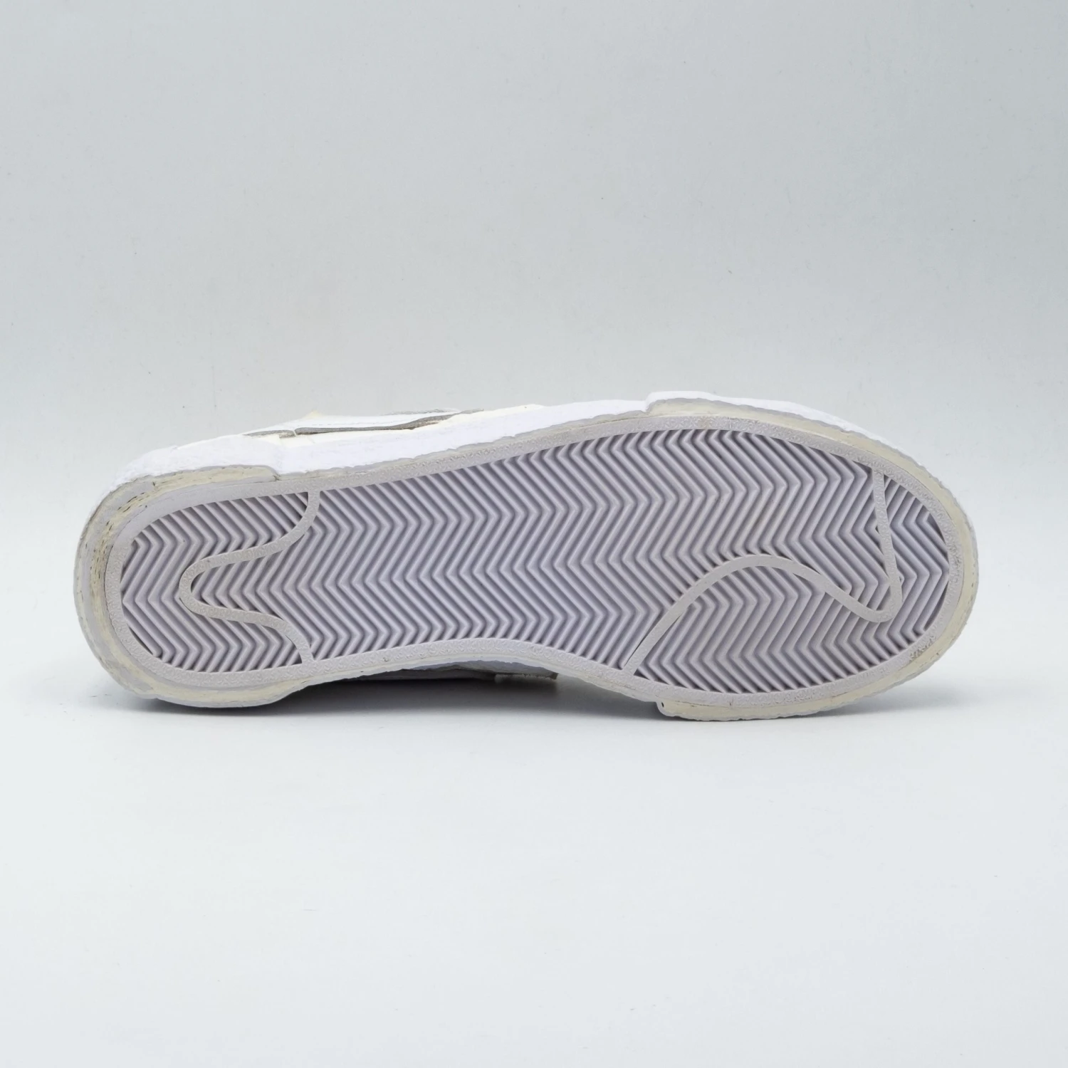 La Nike Blazer Low Sacai White Patent arbore une base en cuir verni blanc aux détails beiges tout autour du mudguard texturé. Les éléments doublés tels que le swoosh et la languette incarnent la touche signature de la créatrice nippone. Tout l’ensemble repose sur une semelle déstructurée au design sophistiqué.