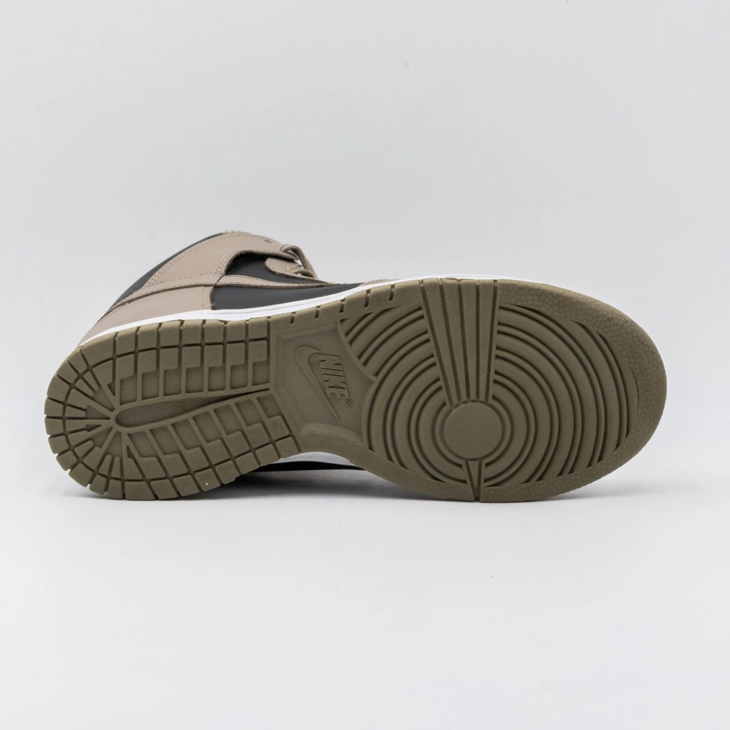 La Nike Dunk High ‘Moon Fossil’ pour femme présente un coloris neutre à deux tons de la chaussure silhouette vintage qui a fait ses débuts en 1985 en tant que chaussure de basket universitaire. La tige entièrement en cuir, réalisée dans des couleurs classiques rappelant la série originale « Be True to Your School », présente une base noire solide avec des superpositions Moon Fossil contrastées. Sur la languette en nylon noir respirant, une étiquette tissée affiche le logo classique de Nike. La chaussure haute repose sur une semelle en caoutchouc durable qui associe des parois latérales blanches à une semelle extérieure en caoutchouc de couleur taupe.