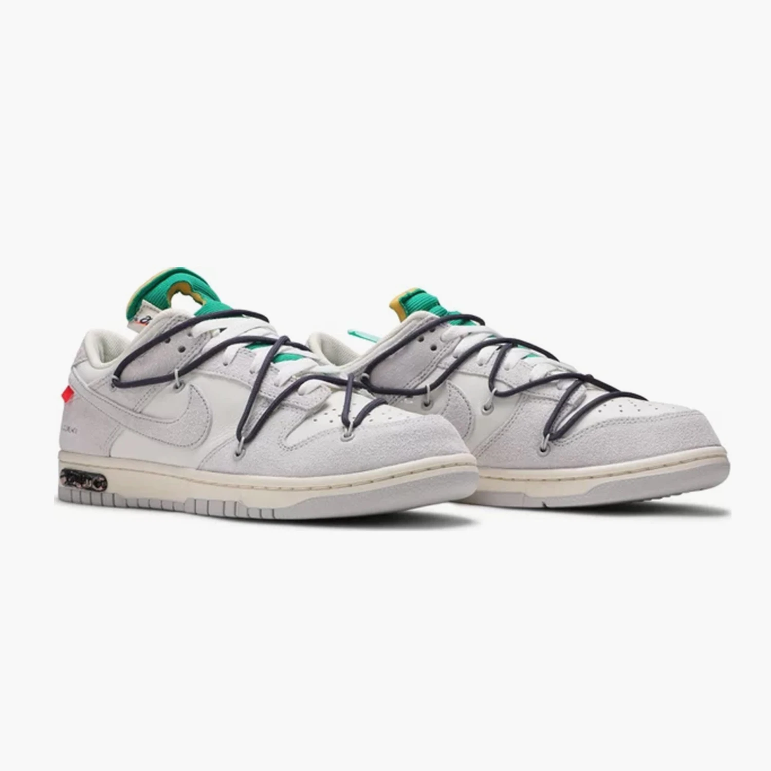 Le pack « The 50 » de Nike x Off-White, surnommé la collection « Dear Summer » par l’Illinoisien Virgil Abloh (et « The 50 » par les passionnés de sneakers), représente le projet le plus ambitieux d’Abloh avec NIKE. La Nike Dunk Low se décline en 50 variations différentes de couleurs pour les lacets supplémentaires, la languette, la doublure intérieure, le zip tie, le numéro de lot et l’empiècement du swoosh latéral.