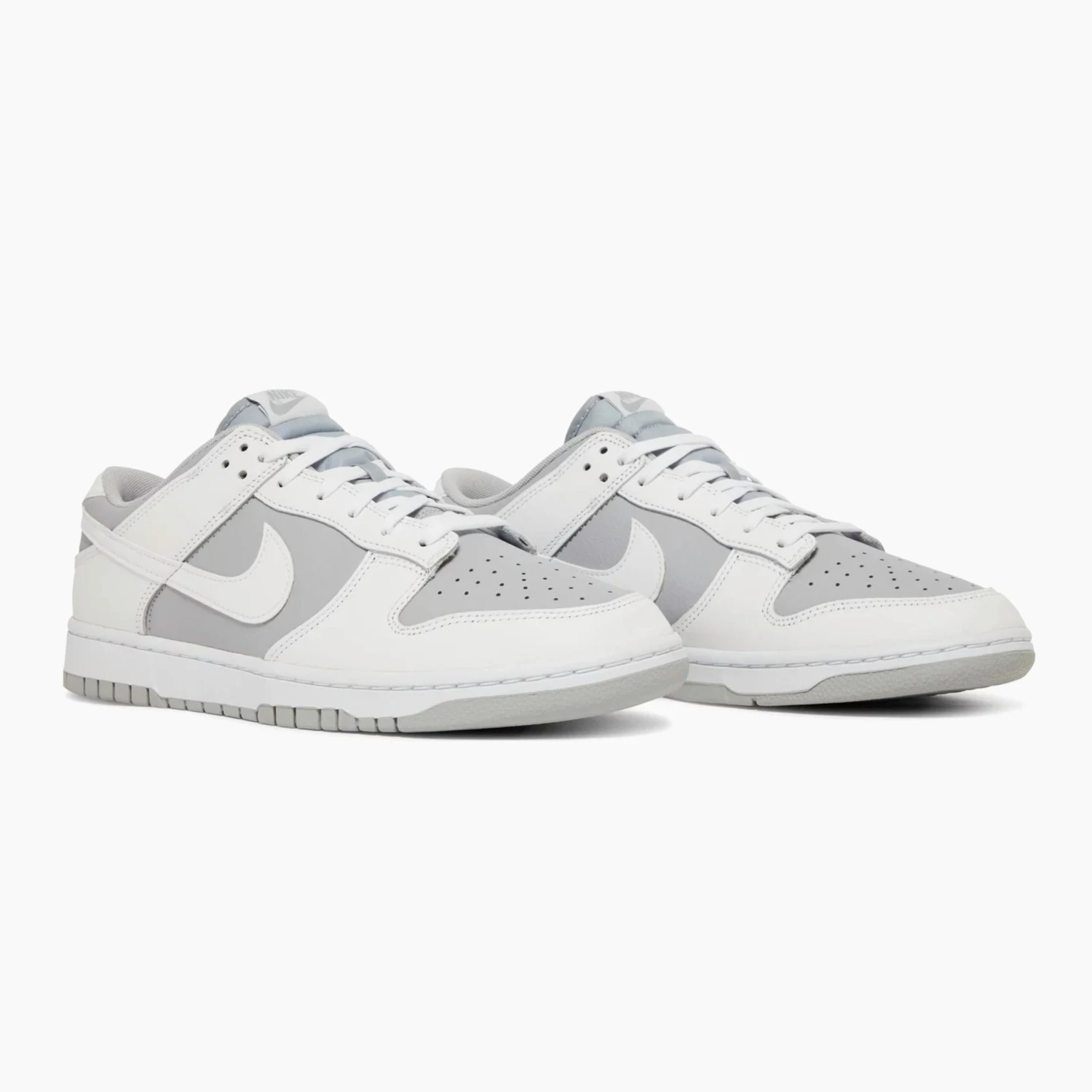 La Nike Dunk Low ‘Grey Fog’ est un subtil coloris bicolore de la silhouette classique sortie à l’origine en 1985 comme chaussure de basket universitaire. L’empeigne en cuir est traité dans une nuance de gris clair avec des superpositions contrastées dans un blanc immaculé. Le même ton neutre est répété sur le Swoosh, les lacets et la languette Nike tissée. Le logo Nike se trouve sur la languette du talon et sur la semelle intérieure rembourrée. La chaussure repose sur une semelle en caoutchouc standard qui associe des parois latérales blanches à une semelle extérieure en caoutchouc gris.