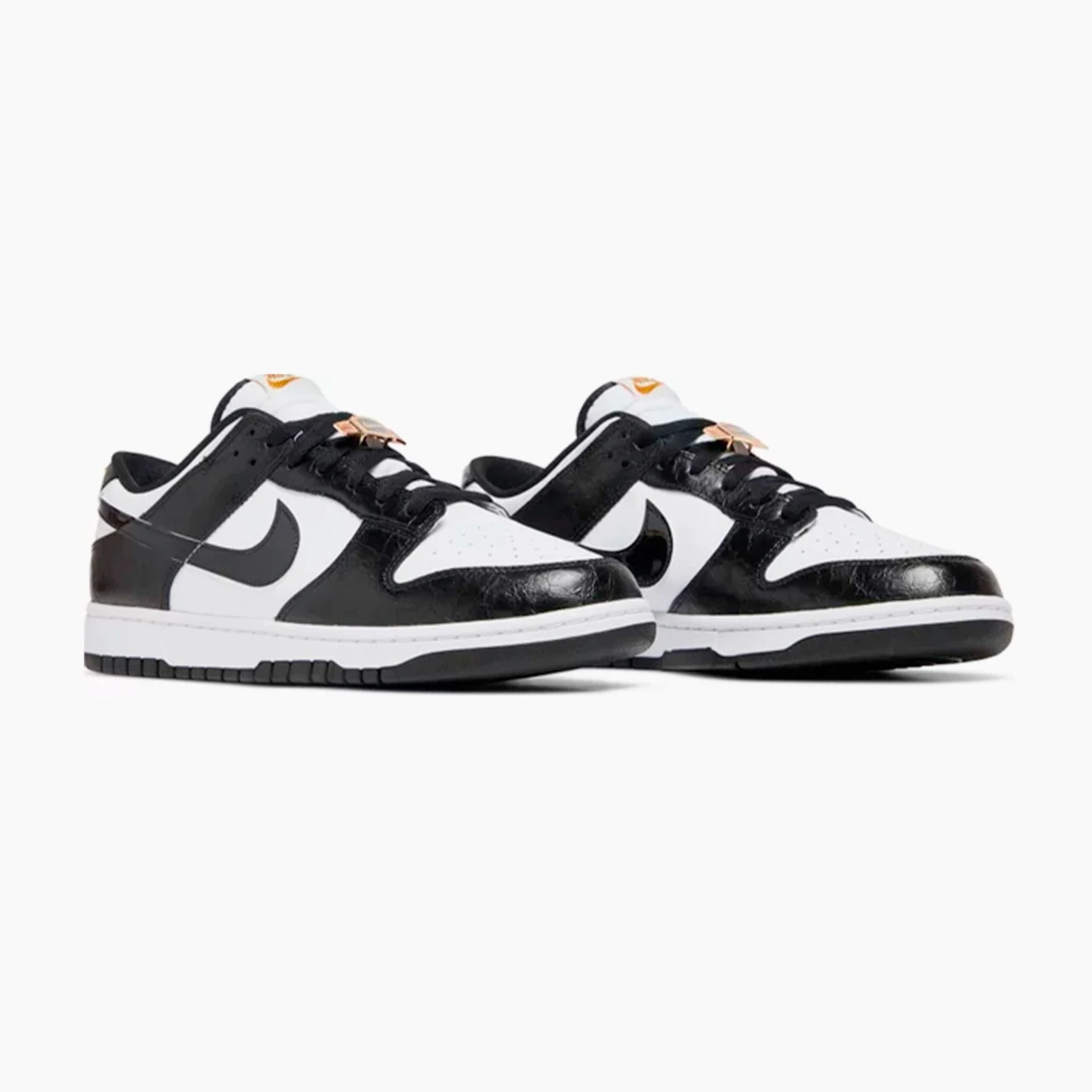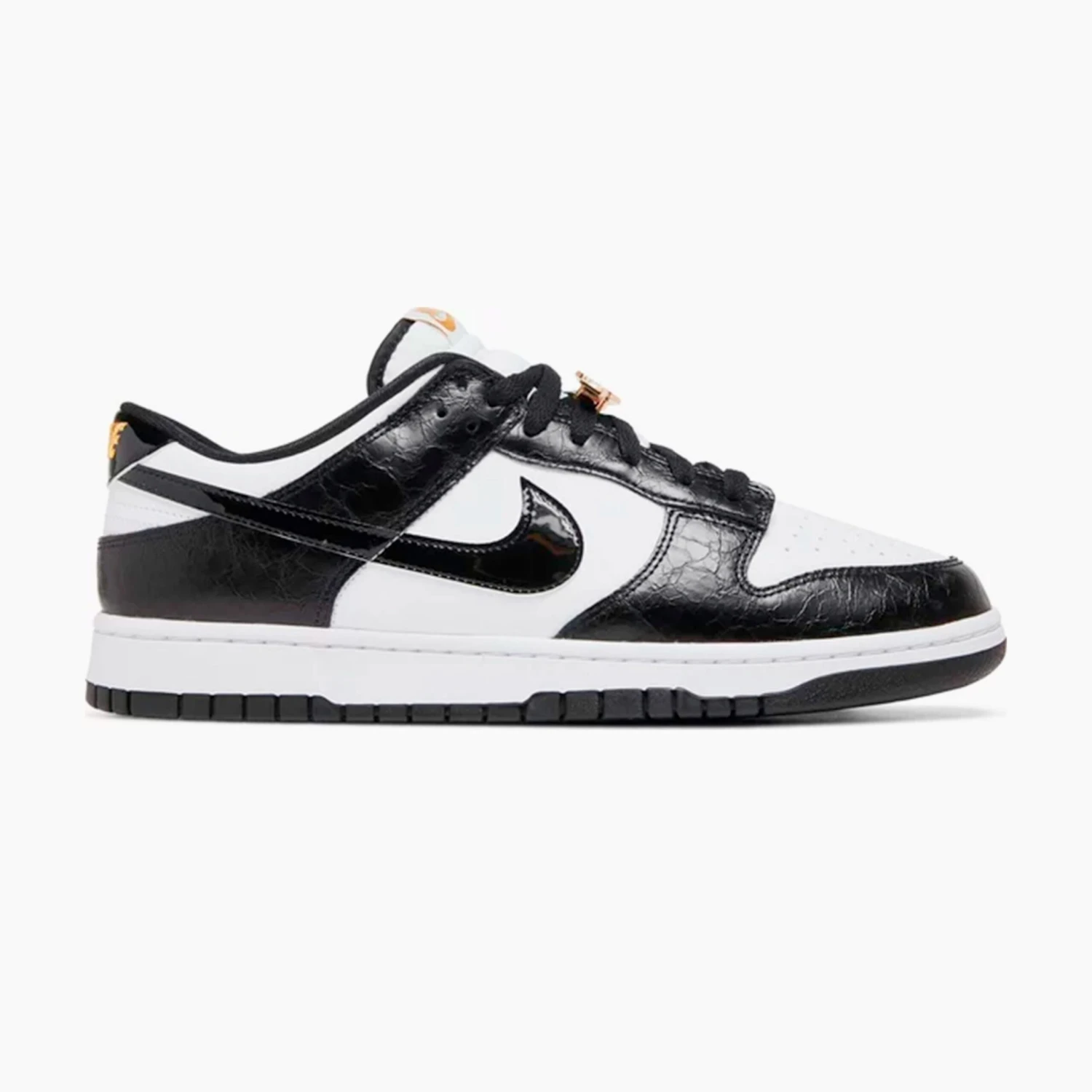 La Dunk Low World Champs Black White est une sneaker élégante qui combine des éléments de noir et de blanc pour un style classique et intemporel. Elle présente un dessus en cuir avec des superpositions noires et des panneaux blancs, accentué par un Swoosh noir brillant. Des détails dorés, comme le petit pendentif de champion au niveau des lacets, ajoutent une touche de luxe au design. La semelle extérieure noire et blanche offre une bonne adhérence et complète le look épuré et sophistiqué de cette édition spéciale.