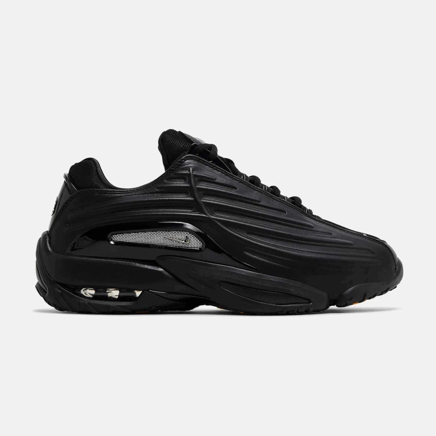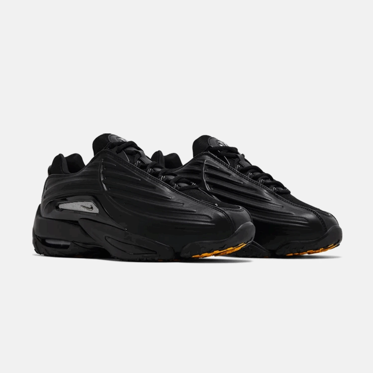 Les Nike Hot Step 2 Drake NOCTA Black, fruit de la collaboration entre Nike et Drake, se distinguent par leur silhouette audacieuse et moderne. Le coloris noir dominant est accentué par une semelle extérieure jaune vif, intégrant des motifs étoilés pour une touche unique. Le design texturé de la tige, entièrement noir, s’accompagne de détails subtils en gris métallisé qui ajoutent une touche de contraste élégant. Avec leur semelle intermédiaire rembourrée et leur traction optimale, ces sneakers combinent style et confort, incarnant parfaitement l’essence de la ligne NOCTA.