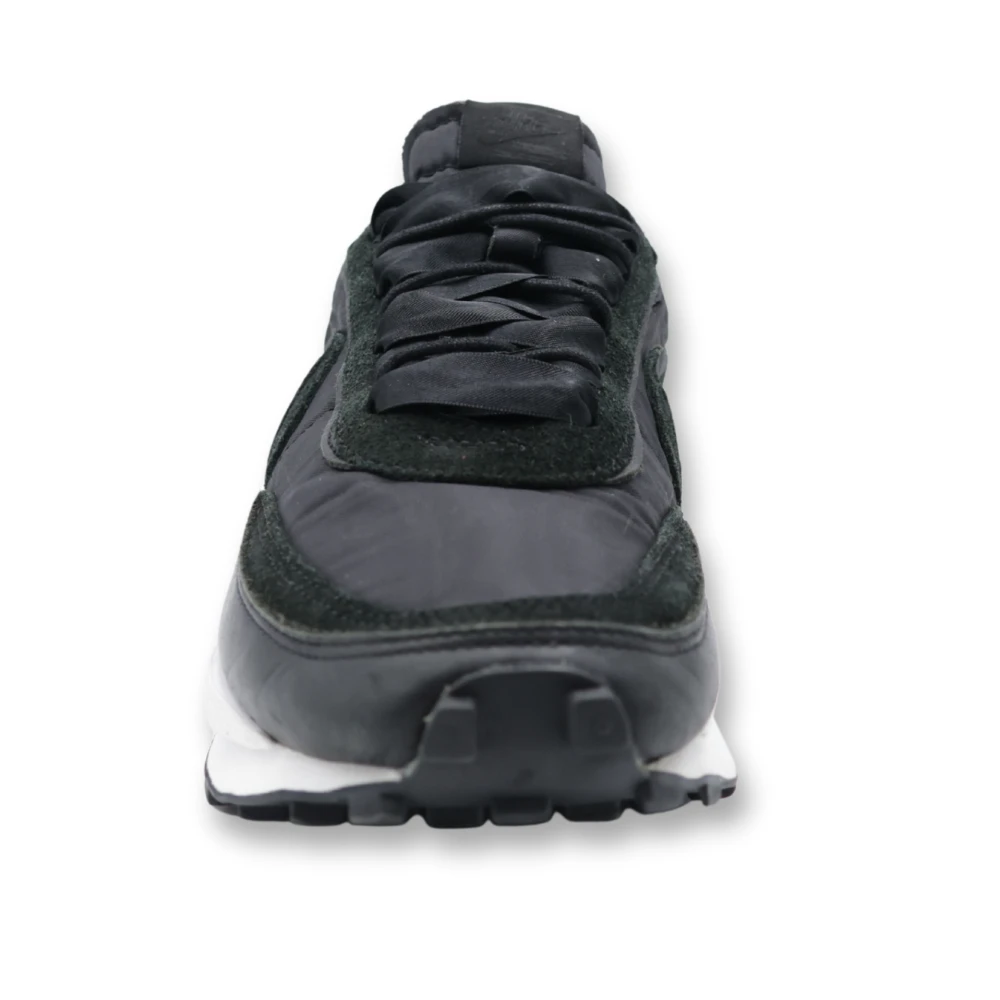 La Nike Sacai x LDWaffle ‘Black Nylon’ offre une version monochromatique de l’une des collaborations de sneakers les plus populaires de 2019. Comme ses prédécesseurs, cette paire présente un design à double thème sur une running hybride qui combine des éléments de la Nike LDV et de la Waffle Racer. La tige en nylon entièrement noire, dotée de Swooshes doublés, de languettes et de lacets, repose sur une semelle intermédiaire allongée en blanc contrasté. S’il s’agit d’une paire used, celle-ci sera envoyée dans une boîte transparente de haute qualité, car elle ne comporte plus sa boîte d’origine.