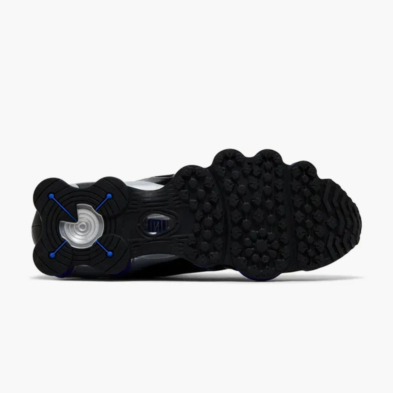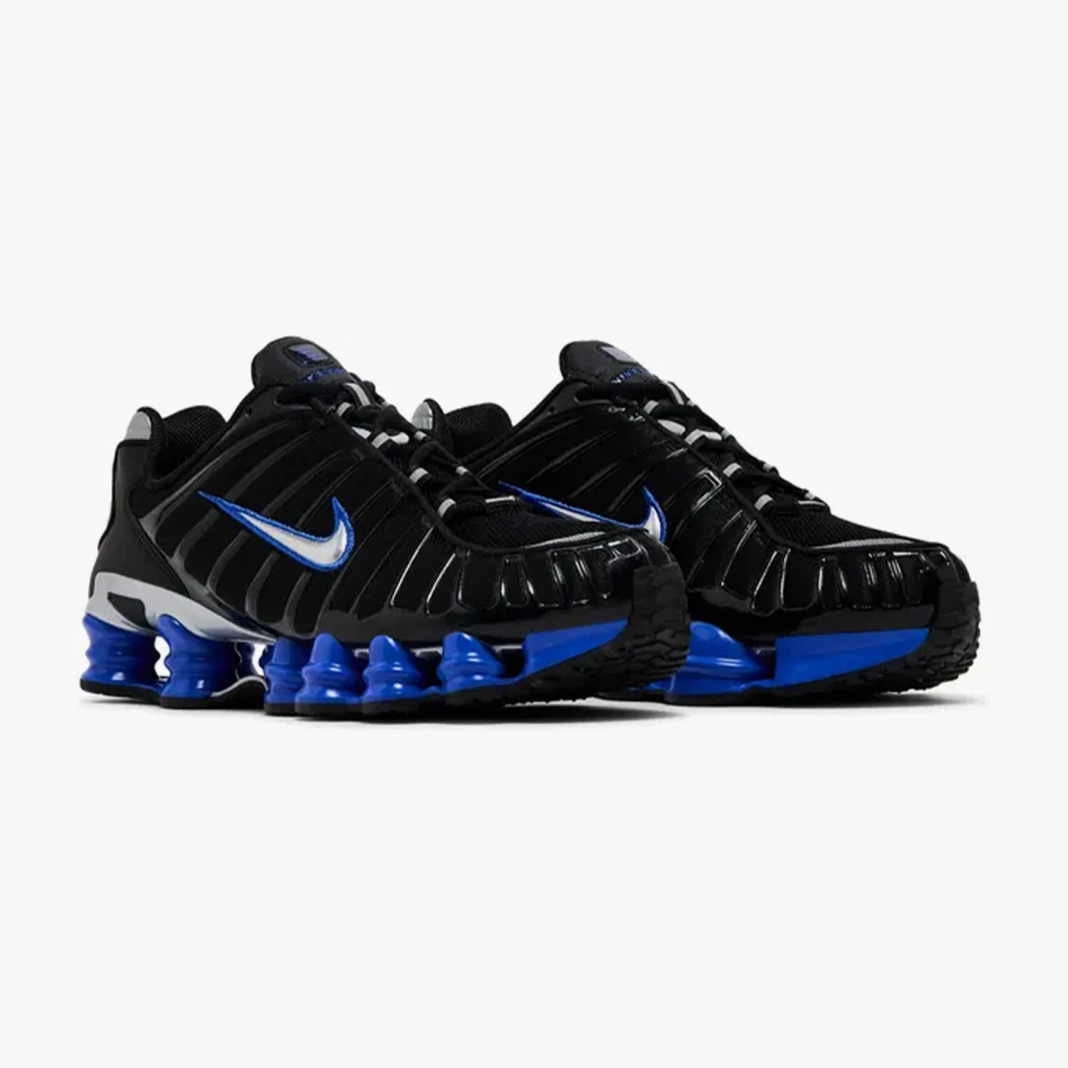 La Nike Shox TL Black Racer Blue Metallic Silver incarne un style futuriste et audacieux, avec sa tige noire structurée par des éléments en TPU brillants. Le Swoosh argenté bordé de bleu dynamise le look, parfaitement assorti à la semelle Shox Racer Blue à l’amorti rebondissant. Le mesh technique assure respirabilité et maintien, tandis que la semelle extérieure crantée garantit adhérence et stabilité. Ce modèle puissant fusionne technologie rétro et design agressif. Une paire taillée pour les amateurs de performance et de style affirmé.