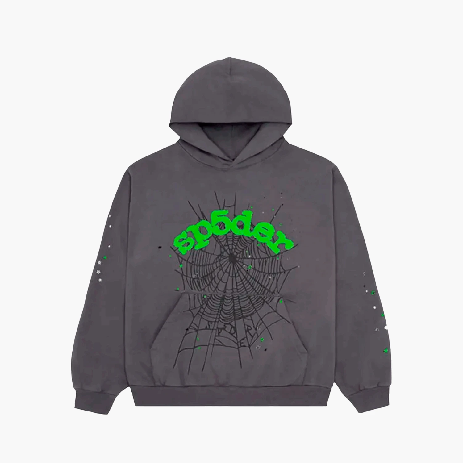 Le Sp5der Hoodie Wait Web Gris est un sweat à capuche audacieux et stylé. Sa teinte grise est rehaussée par un imprimé toile d’araignée noir, donnant un effet visuel marquant. Le logo « Sp5der » en vert néon contraste fortement avec le fond, attirant l’œil immédiatement. Des détails éclaboussés et des motifs étoilés sont ajoutés sur les manches pour une touche encore plus artistique. Confectionné en coton de qualité, il garantit confort et durabilité.