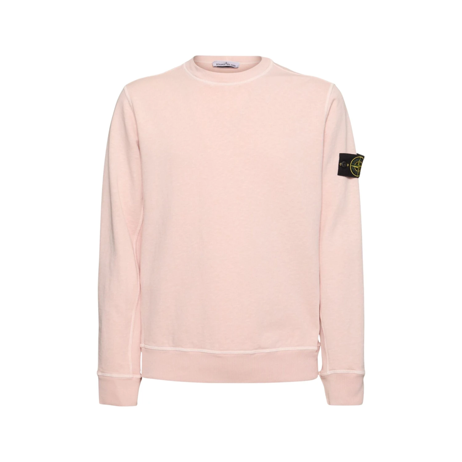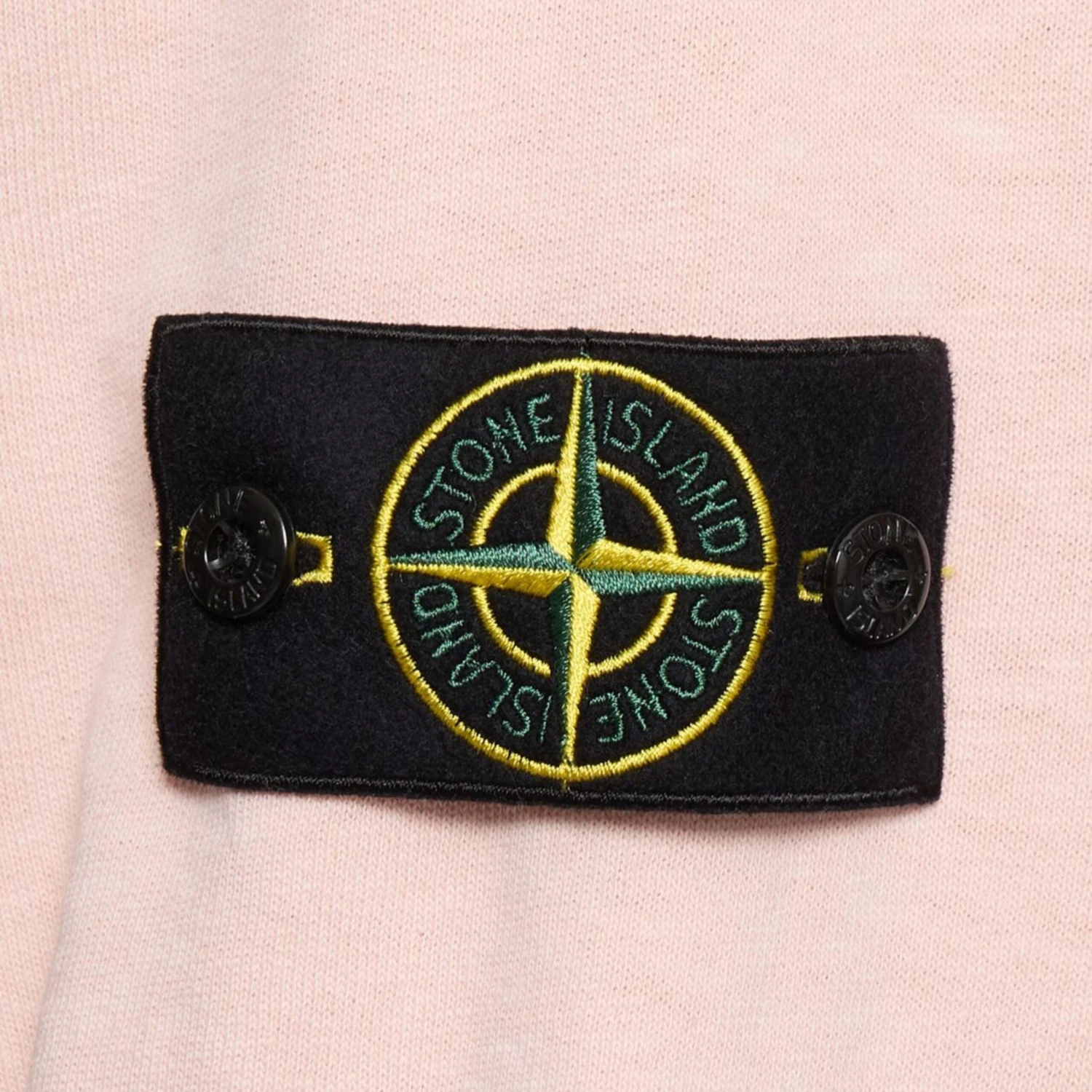 Ce sweatshirt rose en coton signé Stone Island arbore le patch logo emblématique sur la manche gauche.