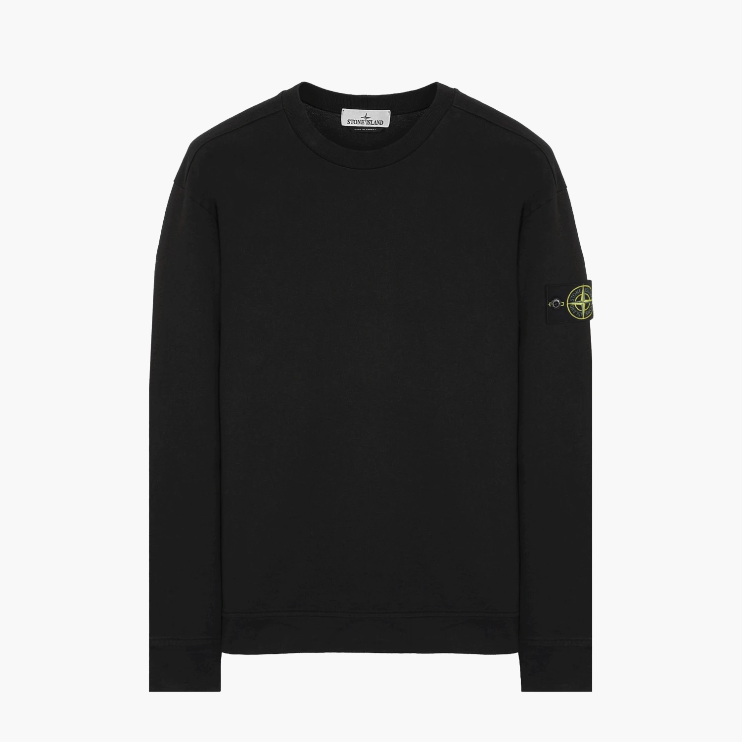 Ce hoodie noir en coton signé Stone Island arbobre le patch logo emblématique sur la manche gauche.